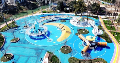 这座儿童游乐园位于解放公园嘉卉广场西南侧,占地面积约5000平方米,原为解放公园游泳池的冲浪池和水杉林旁的秋千场,2022年开始闭门改造。