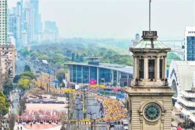 | 选手们奔跑在“最美马拉松赛道”上,感受着武汉的热情。 |