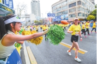 来自四川的张海波今年也是第一次中签汉马,此前他已经长跑9年。他说一路上都有观众给选手打气,补给也很充足,感觉很受宠,“这真是一座热气腾腾的城市”。