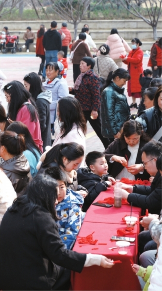 | 社区全职妈妈发动小区居民一起制作玫瑰花。 |