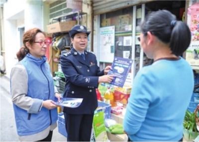| 社区民警全凌雅(中)向居民进行普法宣传。 |