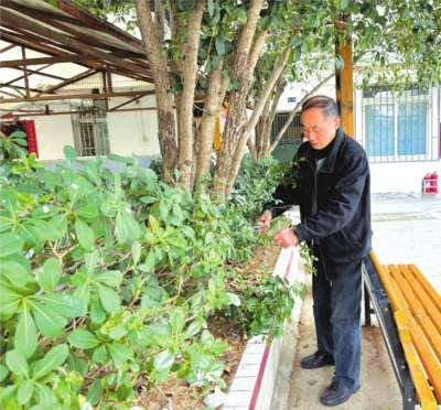 社区300多平方米的绿化带是他的“新战场”。春天,他带着居民栽下紫薇和月季;雨季,他设计排水槽防止积水。枯枝败叶在他的巧手下化作堆肥,连花坛边的石凳也被他加固。