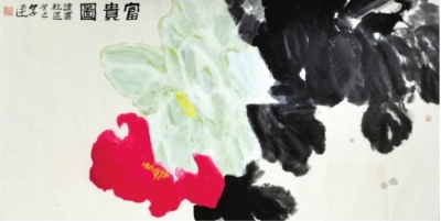 | 中国画《富贵图》 大写意牡丹加上浓墨与淡墨写意叶子块面呈现,有强烈的视觉效果。 作者:龚享连(77岁) 武昌区社区教育学院黄鹤楼街分校 |