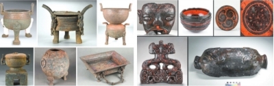 | 出土的铜器和部分漆器(拼版照片,资料照片)。 新华社发 |