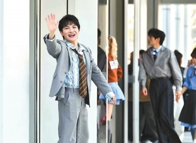 | 周深在新长江传媒大厦前与观众打招呼。 记者詹松 摄 |