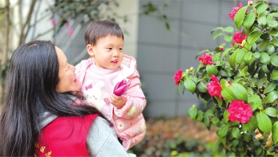 | 《童心逐春意 山茶笑开颜》 作者:邹婧(39岁) 作品拍摄于:青山区钢花村街道114社区方园小区。 |