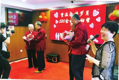 | 社区为金婚老人举办重阳节敬老活动。 (社区供图) |