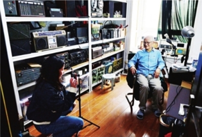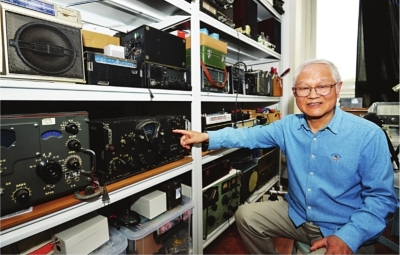 不大的工作间内,两排收纳架上摆满了约40件各式各样的收音机、收信机、录音机,虽然都是“老爷机”,却擦拭保养得锃亮如新,有的依然能正常使用。