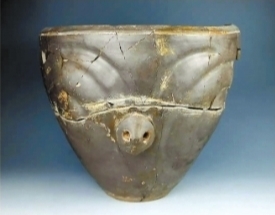 然而,马家窑人的艺术创造力似乎远不止于此。寺洼遗址新出土的众多陶器展现出全新的造型与纹饰风格。如其中一件带有“猪鼻”的马家窑类型泥质灰陶,色泽深沉灰黑如夜,一只鼻子自陶胎中缓缓隆起,上方的弧形纹理像舒展的眉骨,又像张开的羽翼,一场古文明的梦境由此展开。