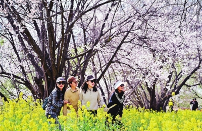 | 3月29日,游客在林芝市巴宜区嘎拉村赏花游玩。 新华社记者齐芷玥 摄 |