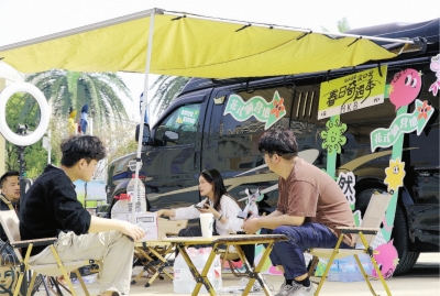 航航篷伞户外用品店老板彭望芳正将一箱折叠露营车搬至店门口:“月亮椅和露营车最抢手,每天能卖上百件,补货都来不及!”她表示,入春后便携式、折叠式装备销量同比翻番,预计这股热度将持续至5月,“每周都要上新,满足不同年龄段顾客的需求”。