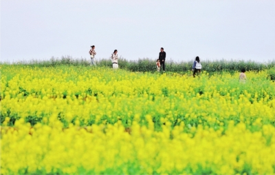 | 光谷生态大走廊绿意盎然,大走廊高新四路一段,大片大片金黄的油菜花盛开。油菜花梯田灿烂又壮观,市民前来踏青游玩。 记者胡冬冬 摄 |