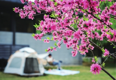 在汉阳区月湖公园内,晚樱叠雪、紫藤垂瀑、碧桃灼灼,姹紫嫣红,吸引众多市民前来拍照游玩。
