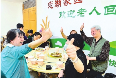 | 恋湖家园小区居民在幸福食堂就餐。 |