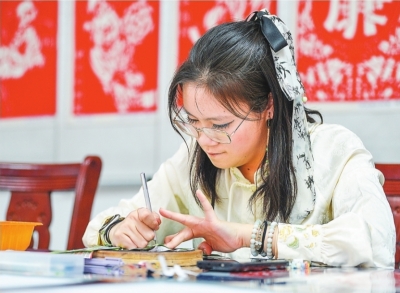 | 李诗瑶在她的工作室里静心创作。 |