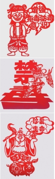 | 李诗瑶以《哪吒》里的人物为原型创作的《哪吒禁毒》系列剪纸。 |
