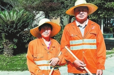刘国雷和张红梅夫妻俩负责银柏路段的清洁工作。结婚35年来夫唱妇随,56岁的张红梅抚摸着洁白的婚纱哽咽道:“结婚那会就穿了件红褂子,没想到社区帮我们老夫妻圆了这个梦。”听了妻子的话,刘国雷紧紧握住她的手,布满老茧的双手交叠处,闪烁着点点银光。