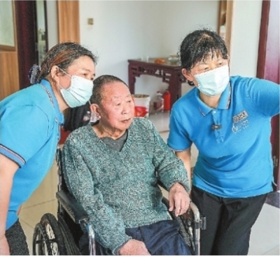 | “长期照护师”上门照顾失能老人。 新华社发 |