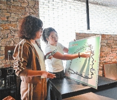 | “民宿管家”王若男(右)向客人讲解游览路线。 新华社发 |