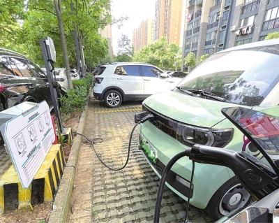 5月12日,江夏区联投龙湾二期南侧院墙旁,业主胡女士将新能源车停入新建成的新能源充电站,插上充电枪,扫码充电后,上楼回家。