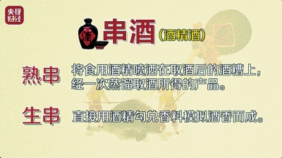 | 串酒:分为熟串和生串。熟串蒸馏的核心成分仍为酒精,这种工艺因成本低廉,每斤售价不到10元,与纯粮固态发酵白酒存在本质的差异。 |