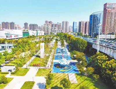家住马路对面青青美庐小区的戴辉蓉和老伴抱着半岁的小孙子正在公园散步。她告诉记者,每天早晚带孙子来逛公园,这里环境好,适合遛娃。