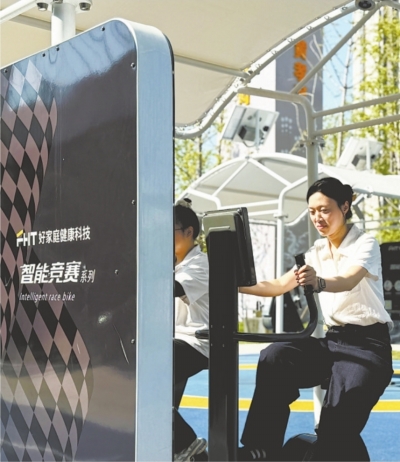 在单方位体测亭,记者站上仪器,快速获取了脂肪率、基础代谢率、骨骼肌含量等多项健康指标。智能竞赛车充满趣味,可实时记录运动数据。其他多种专业训练器满足了健身爱好者的进阶需求。“公园的健身器材挺专业,数据一目了然,锻炼更有针对性了。”一位正在锻炼的市民赞不绝口。