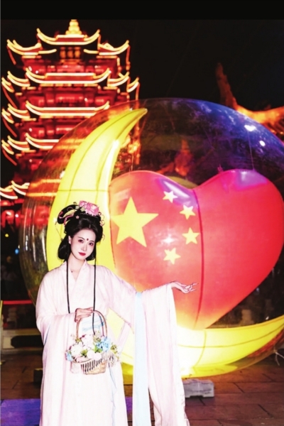 长江之畔,龟蛇两山隔江相望,黄鹤楼与晴川阁两大名楼在夜色中点亮,开启一场跨越江河的“中秋对赏”。红月映诗楼,“夜上黄鹤楼”开启国风盛宴。在园区西广场上,一轮巨型的“爱心月亮”格外夺目,引得游人纷纷驻足拍照。对岸的晴川阁也不逊色,夜游灯光秀与实景剧同步启幕,让“晴川历历汉阳树”的诗意在夜色中活泛起来。10月5日晚,“月满晴川”2025年晴川阁中秋诗会在晴川阁武汉大禹文化博物馆举行,17位优秀演奏家以“月”为灵感,演绎一场中秋主题音乐诗会,让观众在千年古阁中感受诗乐共鸣。
