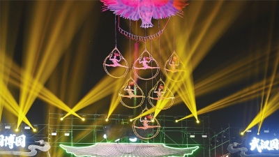 | 园博园夜晚上演“高空杂技—火焰神鸟”。 通讯员徐志刚 摄 |