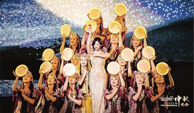 《半个月亮爬上来》《月亮照山川》两首民族旋律,唱出同一轮圆月映照下中华民族一家亲的月光交响。