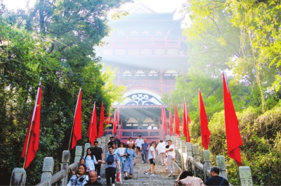 据介绍,中秋国庆双节期间,东湖磨山景区推出了一系列丰富多彩的文化旅游活动,包括穿越寻宝、楚天台编钟乐舞演出、欢乐丛林摩天轮巨幕放映公益电影、飞越丛林歌声祝福祖国等活动,游客可前来体验。