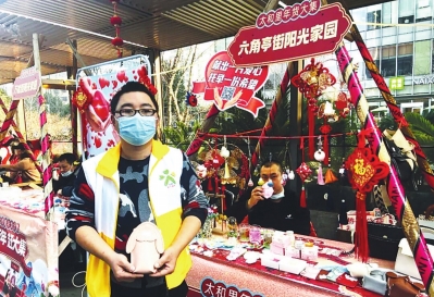 “小姐姐,这是永生花、手工皂、手工包……这些都是我们手工制作的产品,你试试?”在残疾人创业集市的六角亭街道阳光家园摊位前,一位学员正在向路过的几位女士介绍他们的手工制品。被摊前做工精致的手工皂吸引,刘女士拿起手工皂端详,一盒手工制作的护手霜也被这位学员同步推荐:“这个15元一盒,感谢您支持我们残疾人的手工作品!”在一旁的胡春莉看到这样的场景,欣慰地笑了。从排斥到热爱,“胡妈妈”用爱心慢慢地走进每位学员的心里。这位学员持续学习到很多手工技能,多次参加省、市、区残联开展的公益集市活动。