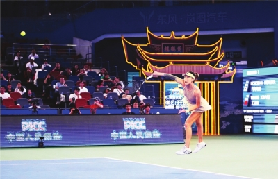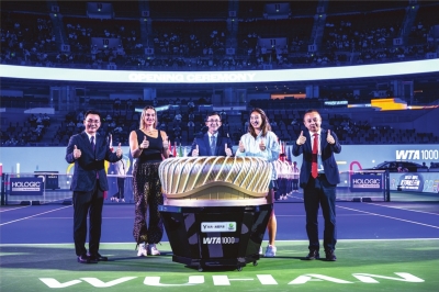 随后,巴黎奥运会网球女单金牌得主郑钦文,世界排名第一、武网三冠王萨巴伦卡等球员和嘉宾一起,手触启动装置,宣告本届武汉网球公开赛开幕。