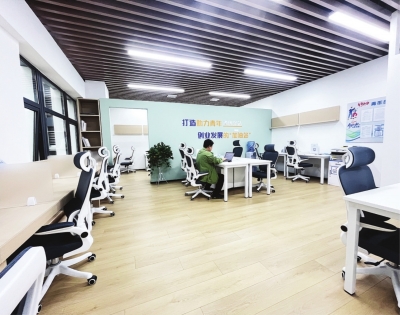 | 公寓配套的青创驿站为创业青年提供了办公工位。 |