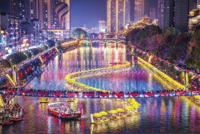 夜幕降临,一盏盏手工制作的花灯次第亮起,汇聚成一条流光溢彩的河流,千人花灯巡游队伍缓缓而行,广场化身一片歌声的海洋。湖北宣恩县的水上市集,生动还原了宋代水上商贸盛景,非遗展示与旅游体验融为一体,为游客带来全新的文旅体验。