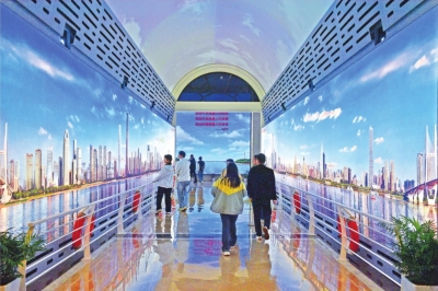 | 市民在规划展示馆城市长廊参观。 记者李永刚 摄 |