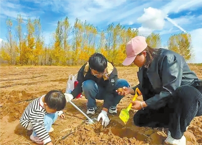 丰收时节,内蒙古各地的马铃薯已基本收获完毕。在呼和浩特市武川县,农户们开放自家已经结束机械收获的田地,把一些小土豆留给游客来挖宝。