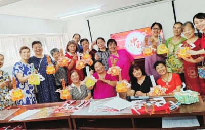 | 中秋节居民参加手工制作活动。 |