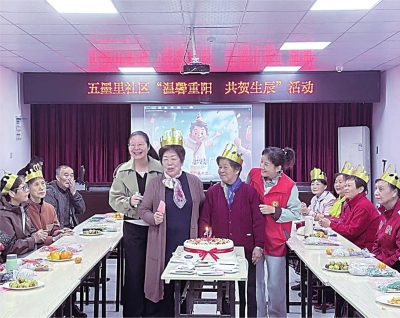 近日,汉阳区五里墩街道五墨里社区志愿者服务队联合长江康养老服务机构、湖北银行、清华口腔医院,共同举办“温馨重阳 共庆生辰”集体生日会,让辖区老年人在节日中感受邻里温情与社会关怀。