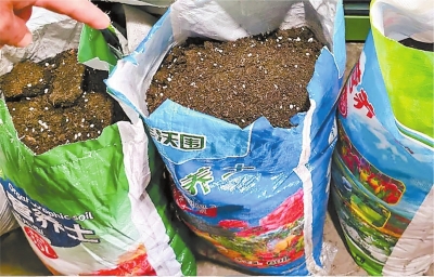 在另一家临街花卉店铺内,记者看到其售卖的唯一一款营养土编织袋背面的产品说明里写着“优选富含有机物质的食用糟粕、木屑、珍珠岩、蚯蚓土、蛭石、腐殖酸、草木灰等为原料”,但当记者想要查看袋中的土壤样品时,遭到了店主的拒绝。