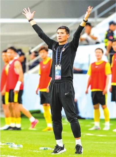 | 邵佳一在场边指挥(资料图)。 新华社发 |