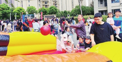 | 小朋友们参与社区举办的趣味活动。 |