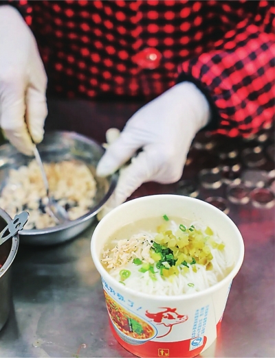 前来的食客络绎不绝,但从不会出现缺斤少两的情况。每一碗都铺上满满当当的牛肉,恨不得把整个碗给塞满。即使点一份素粉,老板也会照常送几块牛肉。这份小小的心意让人吃在嘴里,也暖在心里。