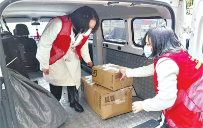 | 社区“红马甲”参与快件装车。 |