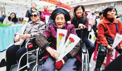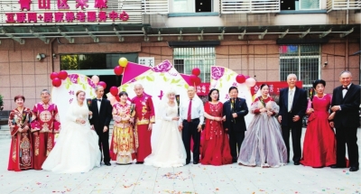 | 重阳节社区为10对金婚老人举办金婚庆典。 社区供图 |