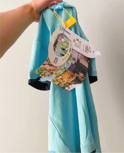 一些消费者发布的“买家秀”显示,确实有不少商家给服装挂上了尺寸夸张的吊牌,通常有A4纸那么大。