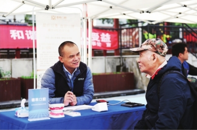 | 德韩口腔工作人员为社区居民科普口腔保健知识。 |