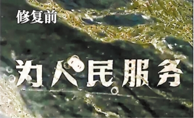 | 11月6日,修复后的“为人民服务”巨幅飞行地标。 新华社发 |