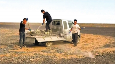 在实地观察现场后,陆遥和朋友跑遍了哈密所有矿业公司和砂厂,寻找与戈壁相似的黑色砂石。最终,经过反复试验,他找来4名帮手,花费一周时间,将一些越野车漂移留下的车辙坑洼,用27车重20吨的砂石全部填平。