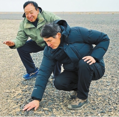 11月6日清早,卢建华、韩郑和陆遥再次回到地标旁。看到地标周围已有围栏保护,卢建华、韩郑欣慰地讲起从前。“几十年前,我们在这片空域训练,周末就带上水壶、馕来维护清理被风刮进字体里的小石子,这就是我们的来时路啊!”寒风中,韩郑红了眼眶,几度哽咽。